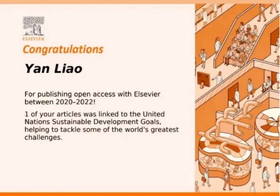 國際頂尖出版社Elsevier祝賀廖延博士研究成果在聯合國可...