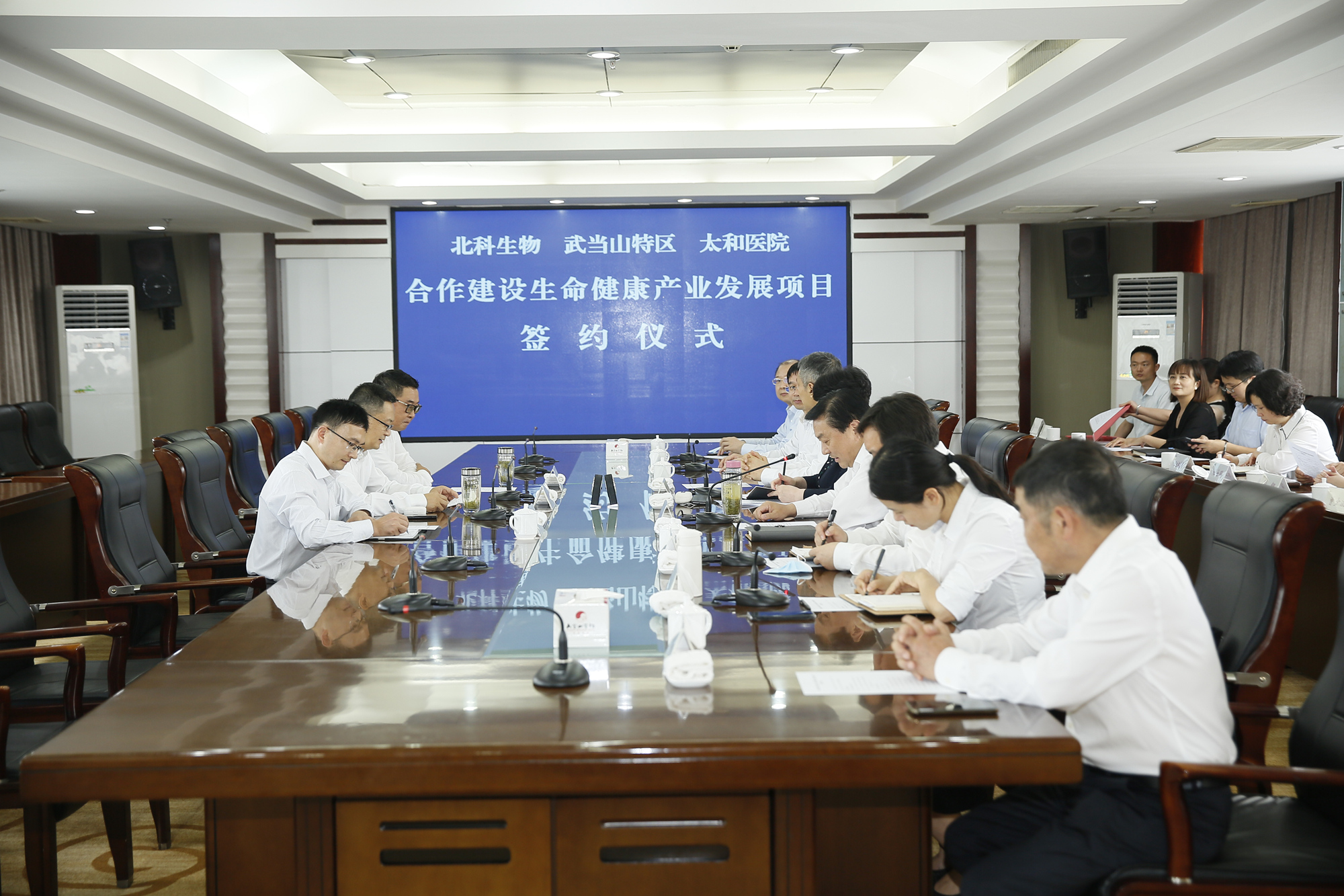 簽約儀式現場,深圳市北科生物科技有限公司、特區管委會、太和醫院代表三方共同簽訂了協議。北科生物科技有限公司與太和健康投資管理有限責任公司簽訂了協議。
