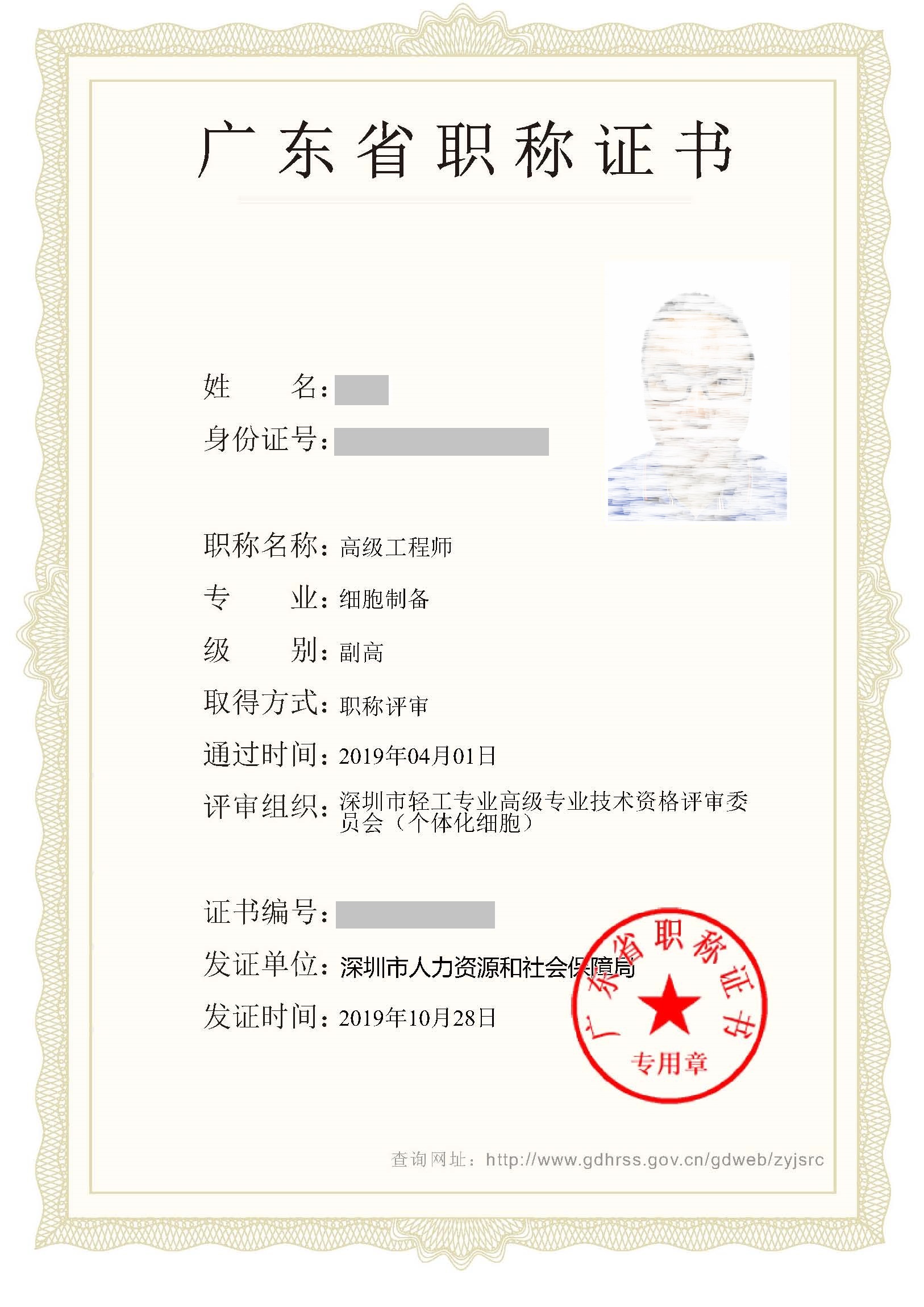 日前,細胞行業從業人員迎來了鼓舞人心的消息,由深圳市人力資源與社會保障部頒發的“細胞制備高級工程師職稱證書”和“細胞質量管理高級工程師職稱證書”正式制證完畢,已可通過廣東政務官網進行查詢。這一里程碑式的事件標志著個體化細胞技術這一新興行業的專業技術人才,終于擁有了屬于自己的“人才戶口本”,細胞行業正式開始“執證上崗”!