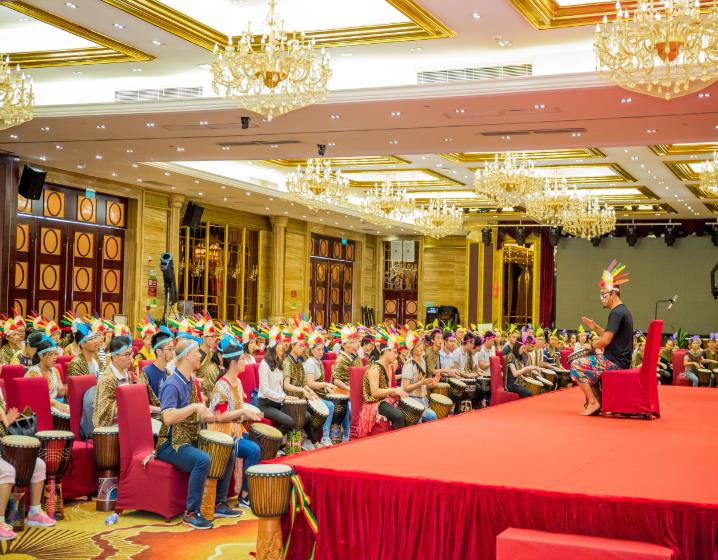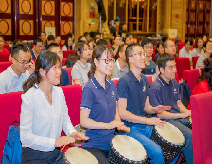 初始,在無言的敲打演奏中,每位北科人皆特立獨行,樂章零落散碎,主持人便提出北科多年來在細胞領域堅持的三個關鍵詞“專心、專業、專注”以勵大家,無論何時、何地、何事,身為北科一份子,北科人都應上下一心、和而不同,在共同的目標面前,所有人放下自己的身份、地位,只為實現在北科生物十三周年慶的今日,為它送上一曲誠摯的生日祝福。最后,在主持人耐心的引領下,在場的300余位北科人統一節奏、鼓點,為北科生物13周年慶典送上一曲慷慨激昂的音樂祝福!