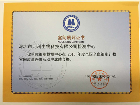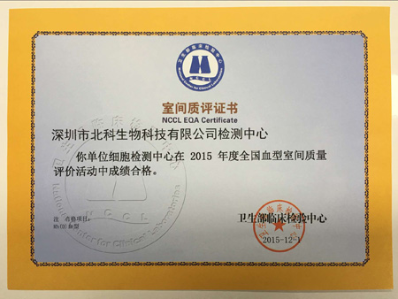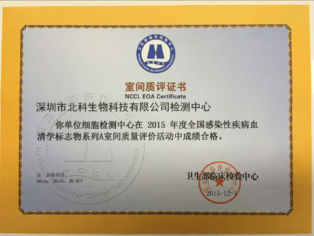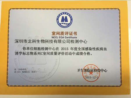 近期,服務于深圳綜合細胞庫暨深圳(北科)區域細胞制備中心的深圳細胞質量檢測平臺收到衛生部臨床檢驗中心頒發的2015年度《室間質評證書》,質評所有項目成績均合格。這表明北科生物承擔建設運營的深圳細胞質量檢測平臺的質檢技術及能力已達到國內一流水平,對進一步規范細胞檢測質量將起到積極推動作用,能有效保障細胞質量和臨床使用細胞儲存與臨床應用的安全。