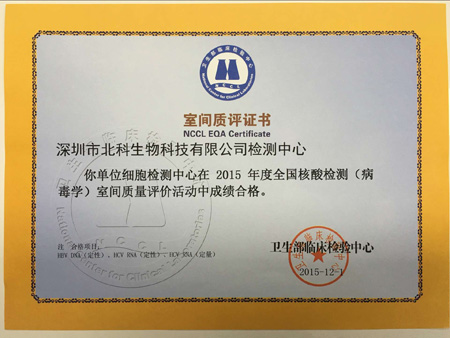 至今,北科生物自2011年以來,已參加4次衛生部臨床檢驗中心組織的室間質評活動,均獲得合格的《室間質評證書》;今后,深圳細胞質量檢測平臺將持續參加室間質評項目,為客戶儲存的細胞及制備臨床級細胞提供更安全保障。