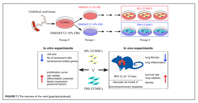 該研究證明了hPL作為UC-MSCs培養的補充添加物所具有的功能作用,表明其重要的臨床使用價值。這將有助于促進hPL在未來UCMSCs規模化培養中的廣泛應用,并為臨床BPD患兒的治療應用提供更多幫助。