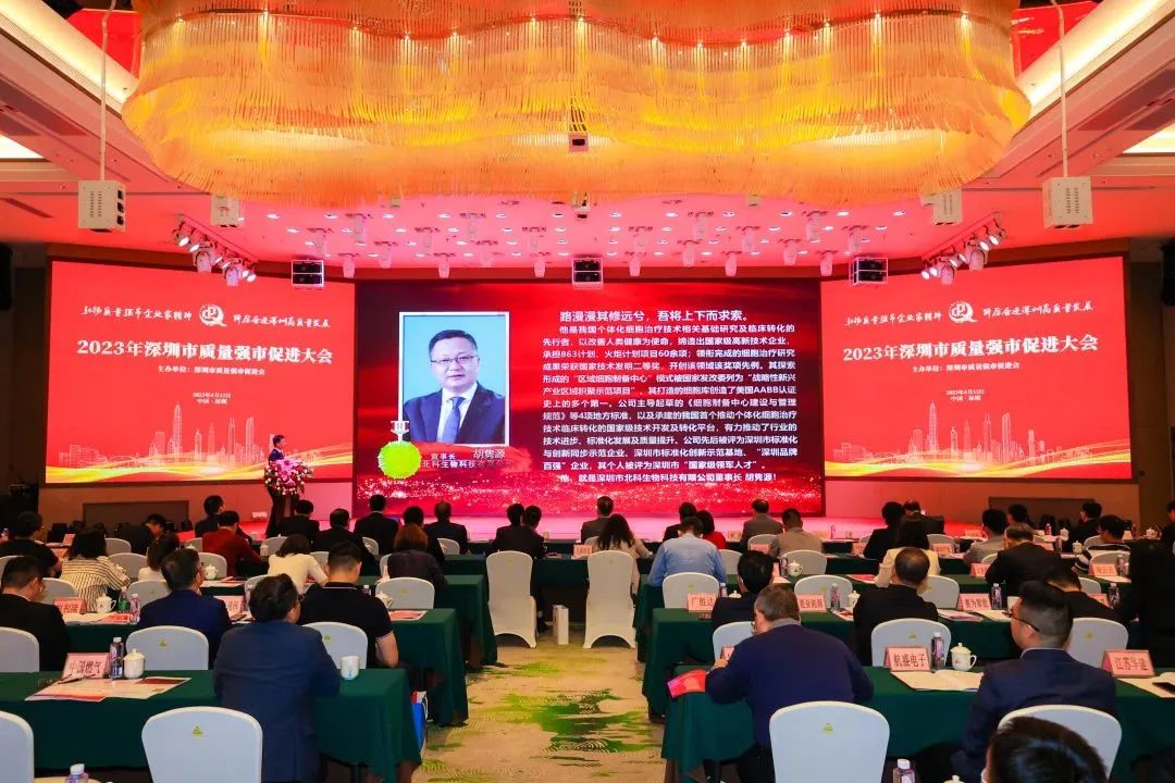 2023年4月12日,2023年深圳市質量強市促進大會暨深圳市質量強市促進會建會十周年慶祝大會在深圳銀湖國際會議中心舉行。大會對榮獲第九屆“深圳市質量強市金質獎章”及提名獎的優秀企業家進行了隆重表彰,深圳市北科生物科技有限公司董事長胡雋源博士榮獲第九屆“深圳市質量強市金質獎章”,同時經過會議審議,胡雋源博士增補成為深圳市質量強市促進會第三屆理事會副會長,北科生物成為深圳市質量強市促進會副會長單位。