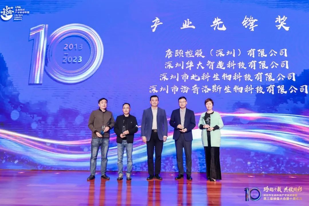 2023年3月28日,深圳市生命科技產學研資聯盟第三屆換屆大會暨十周年慶典活動在深圳成功舉辦。北科生物以在生命科學與生物技術產業發展中做出突出貢獻榮獲“產業先鋒獎”,充分展現了行業機構和社會各界對北科生物科研能力、品牌影響力和良好口碑的認可。